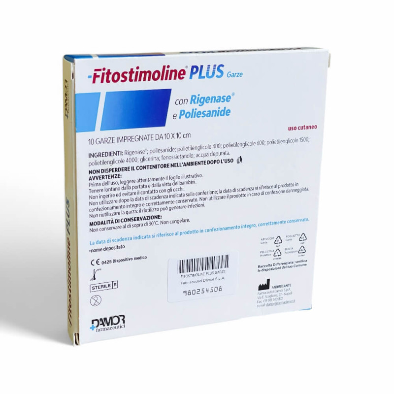Fitostimoline Plus Garze – це стерильні марлеві серветки, просочені інноваційною формулою з Rigenase (екстракт пшениці) та Poliesanide (антисептик нового покоління). Засіб одночасно стимулює регенерацію тканин та забезпечує антибактеріальний захист, що робить його ідеальним для лікування інфікованих ран, пролежнів, трофічних виразок, опіків та післяопераційних уражень шкіри.