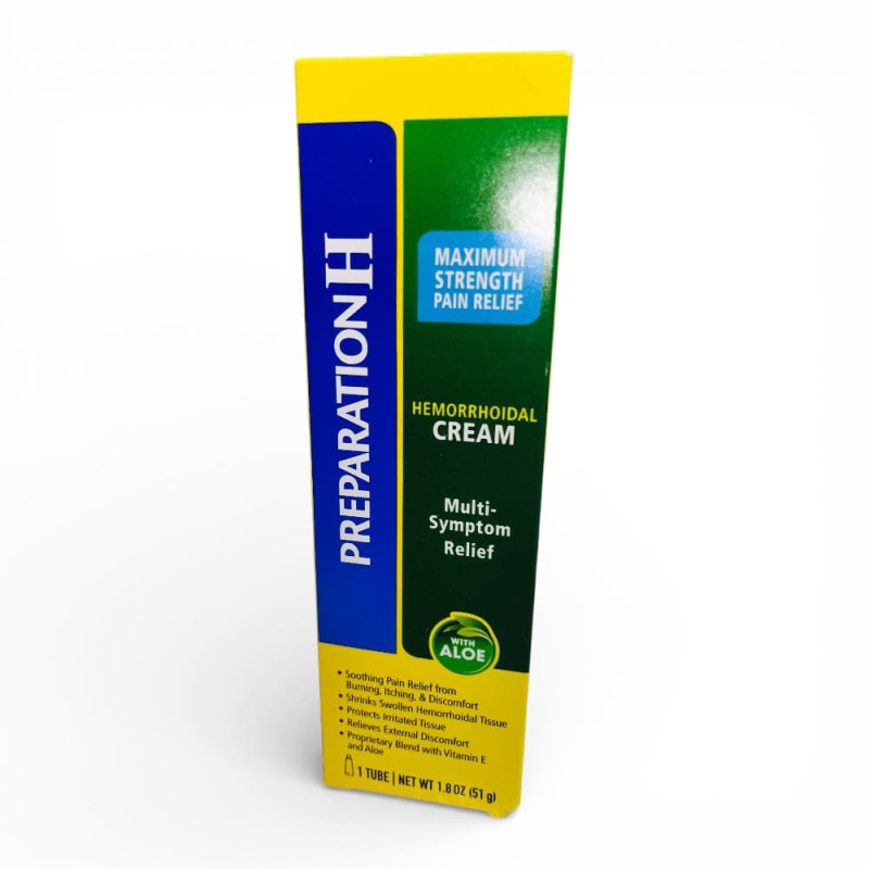 Preparation H гемороїдальний крем з алое Maximum Strength — це засіб для зовнішнього застосування, призначений для тимчасового полегшення дискомфорту, пов’язаного з гемороїдальними проявами. Кремова текстура легко розподіляється по шкірі та підходить для регулярного місцевого догляду.